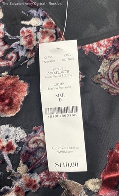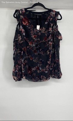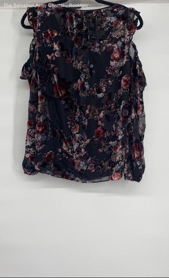 White House Black Market Womens Black Burgundy Floral Blouse Top Size 0