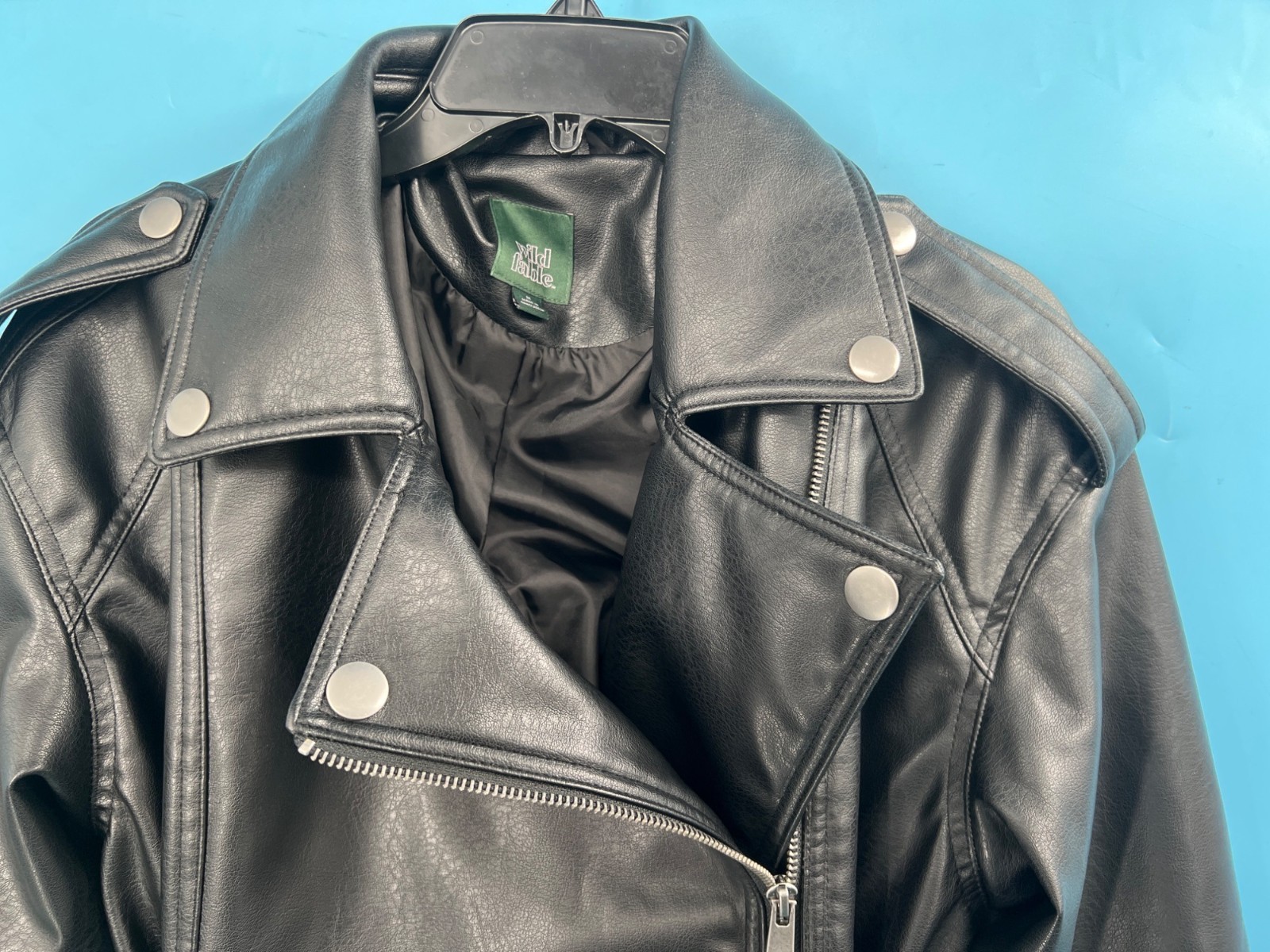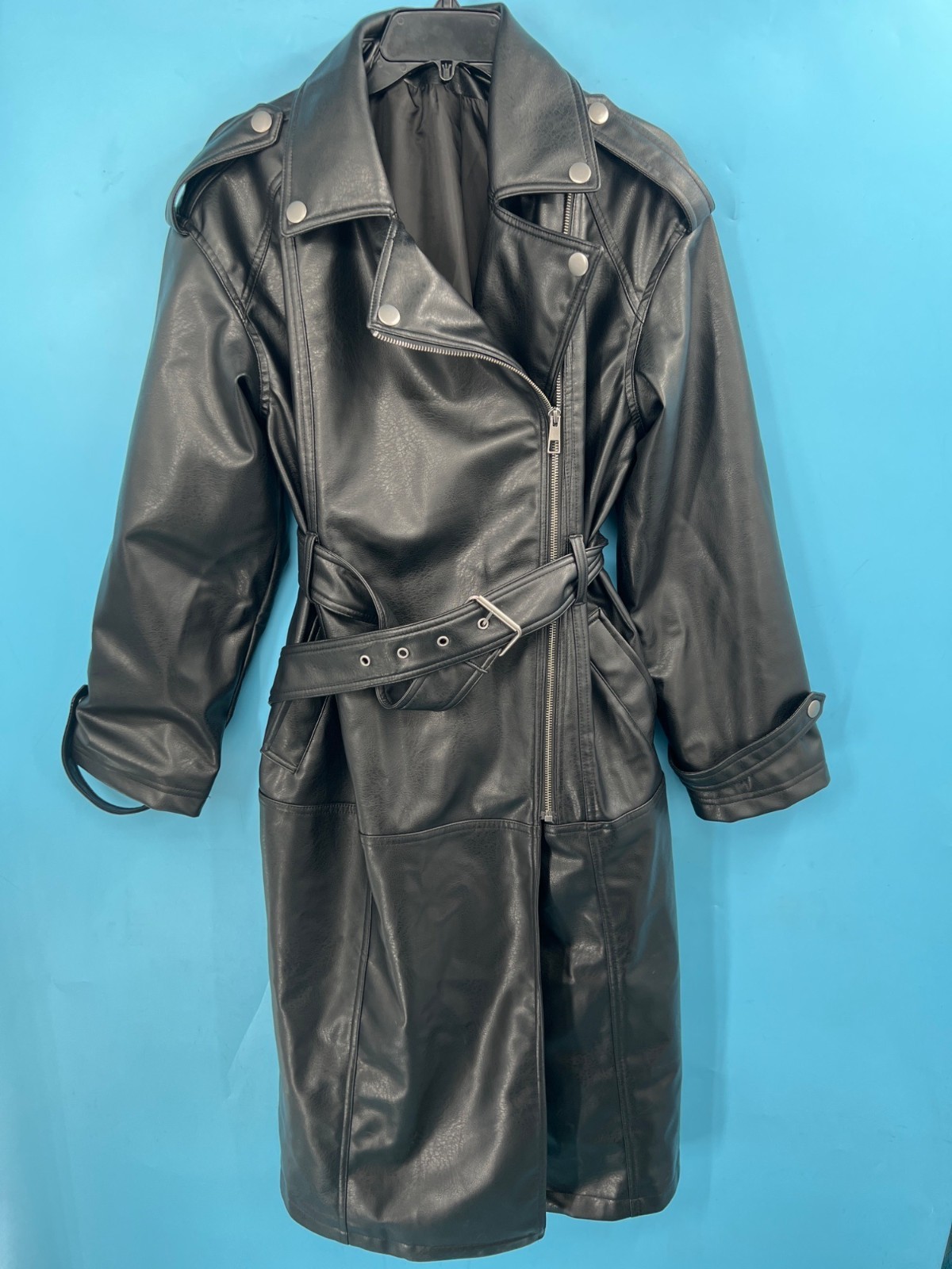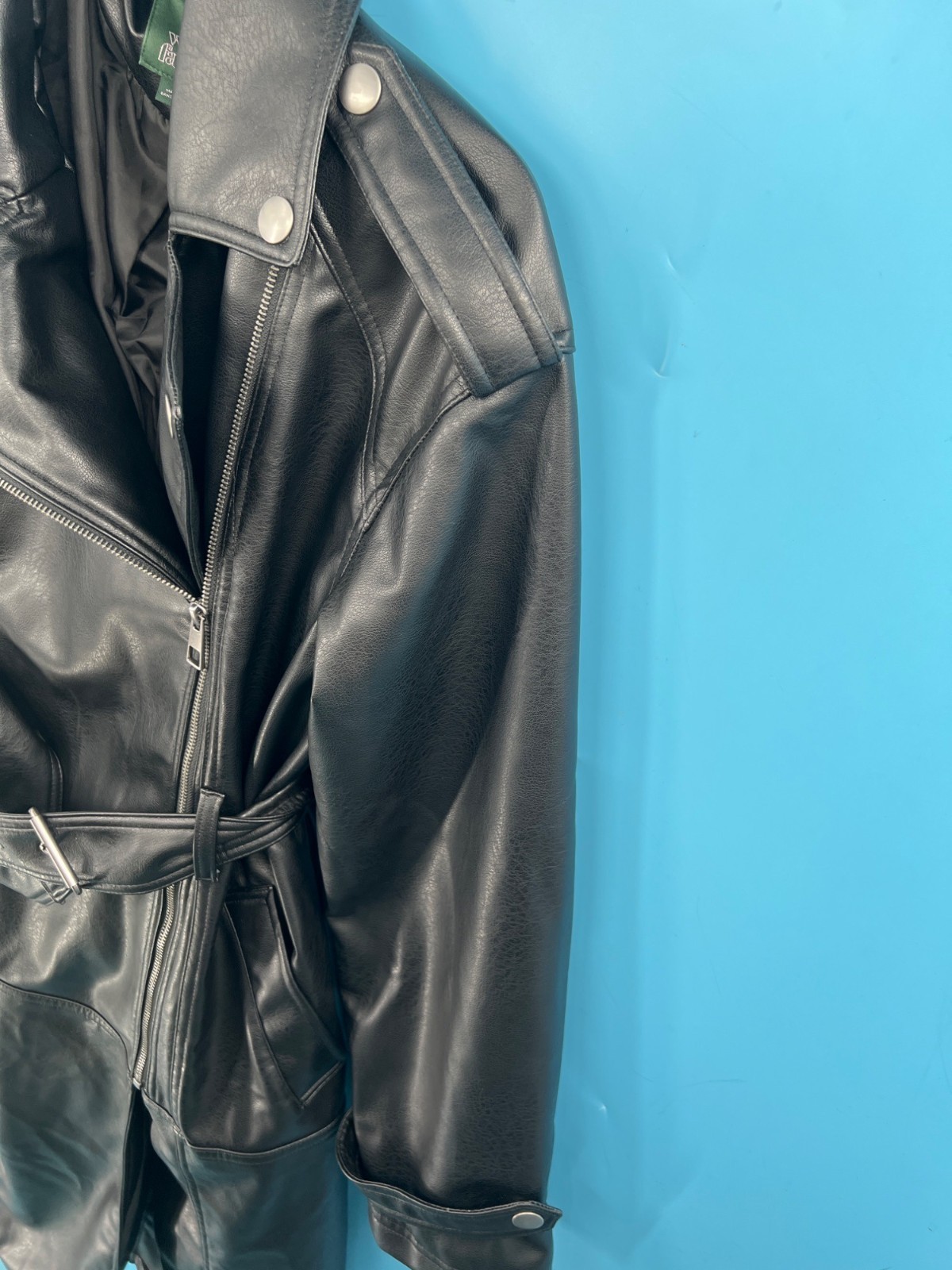 Wild Fable Womens Black Faux Leather Trench Coat (size M)