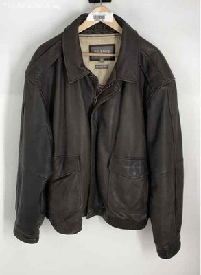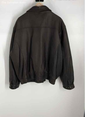 Wilsons Leather Mens Brown Long Sleeve Full-Zip Collared Bomber Jacket Size 2XL