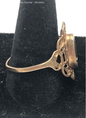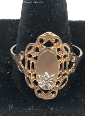 Womens 14k Fine Jewelry Filigree Solitaire Oval Gold Diamond Ring Size 12.5