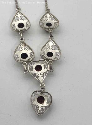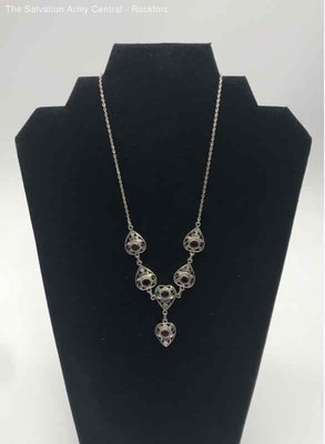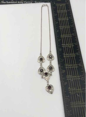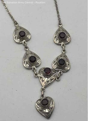 Womens 925 Sterling Silver Classic Statement Ruby Necklace 13.50g