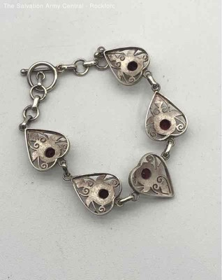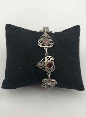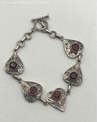Womens 925 Sterling Silver Fine Jewelry Toggle Ruby Filigree Bracelet 12.08g