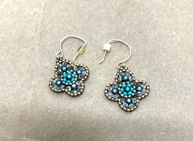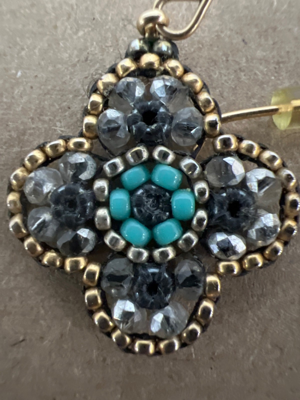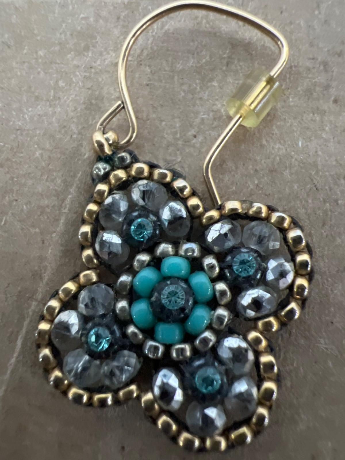 Women's Gold-Tone Grey/Blue Beaded & Jeweled Floral Dangle Earrings