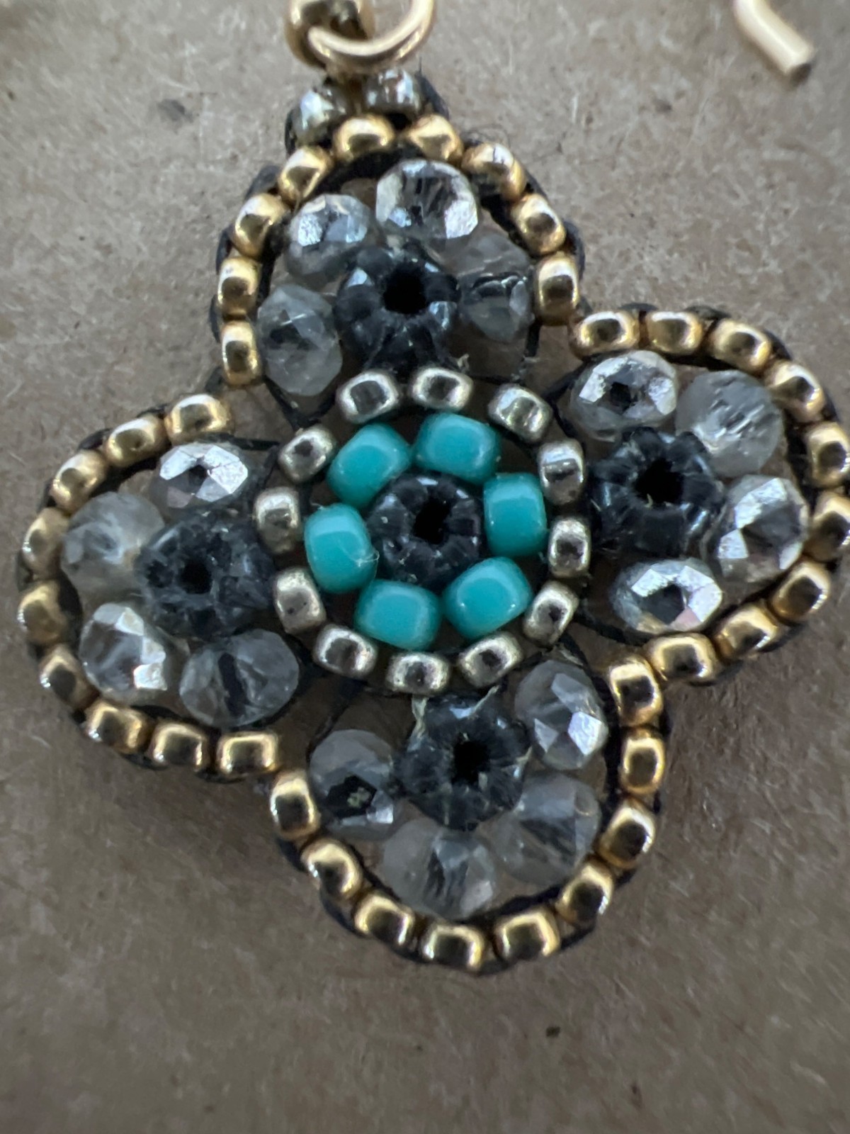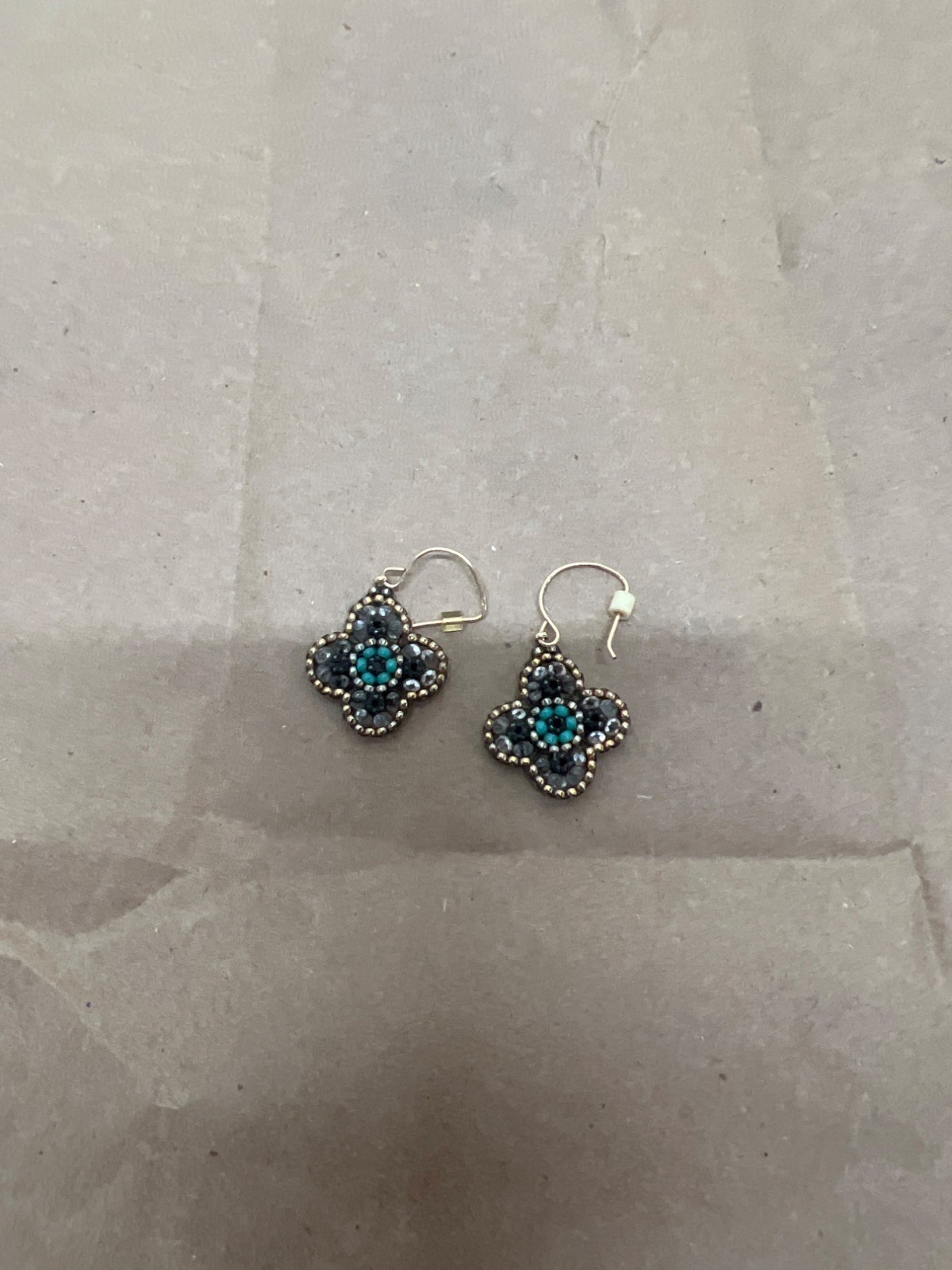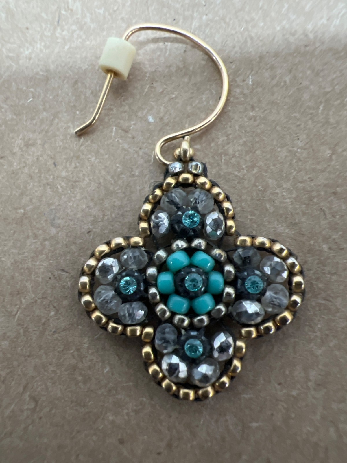 Women's Gold-Tone Grey/Blue Beaded & Jeweled Floral Dangle Earrings