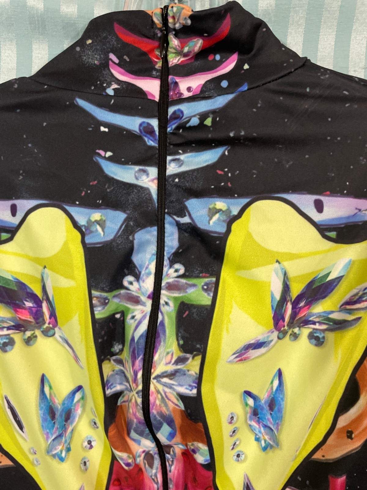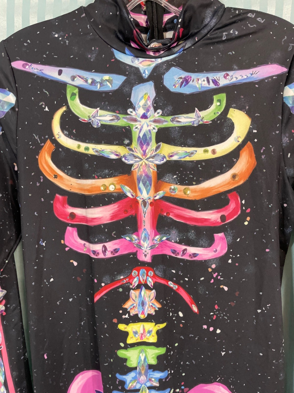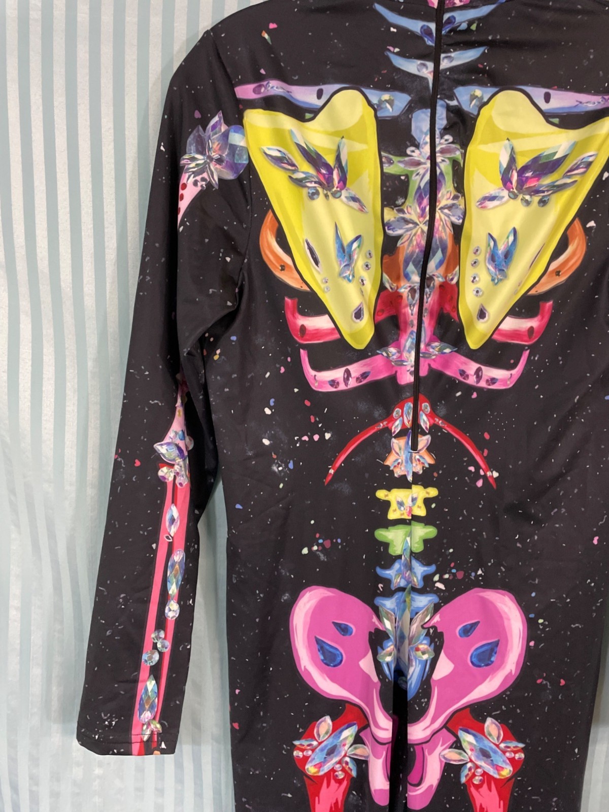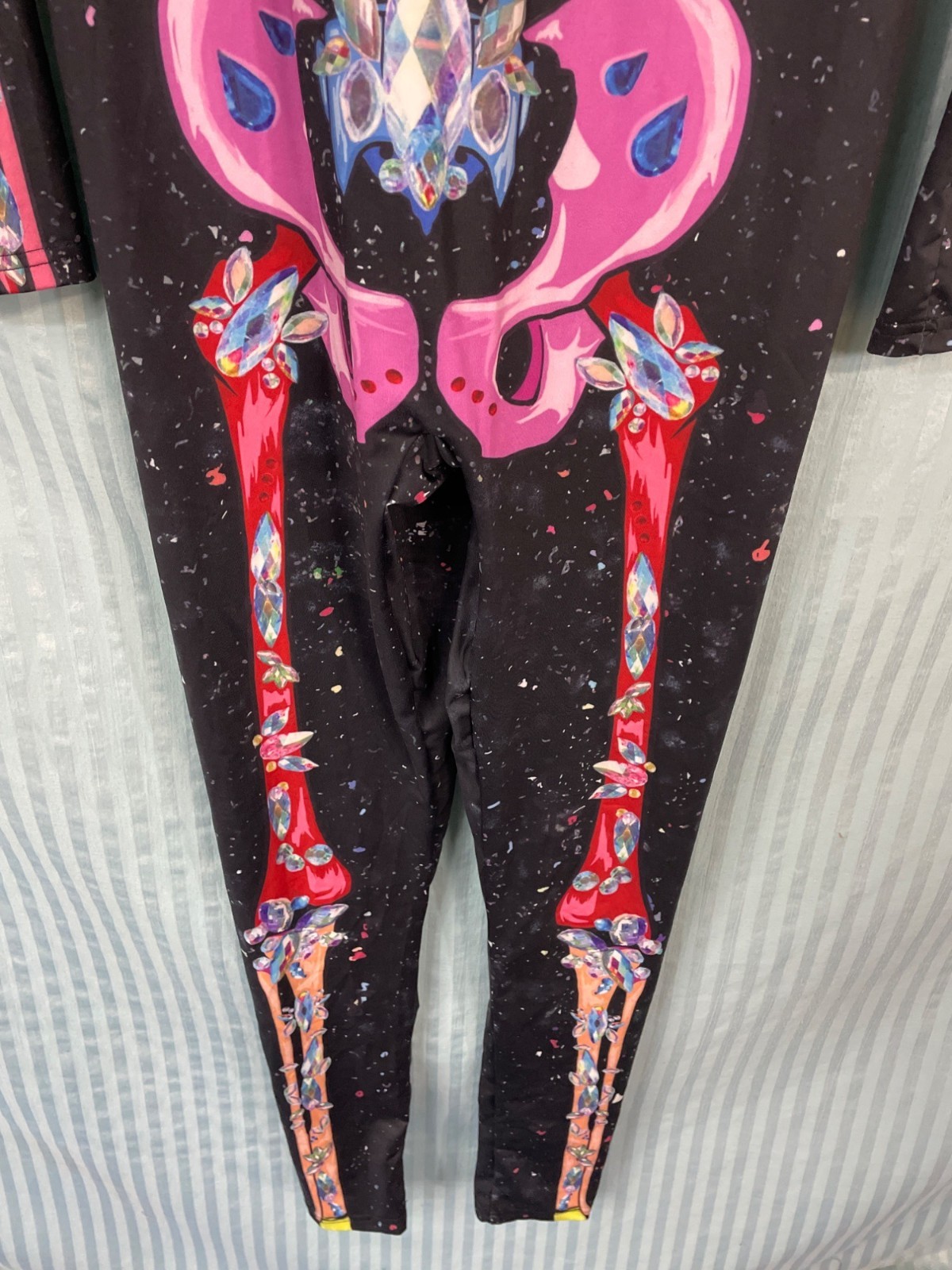 Womens Skeleton Printed Multicolor One Piece Bodycon Jumpsuit Costume- M