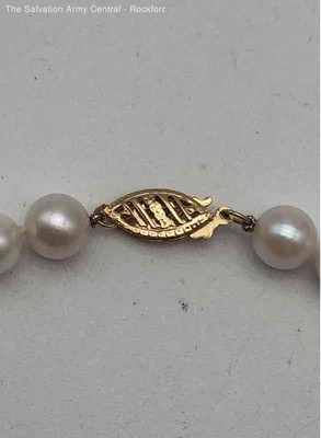 Womens White 14k Yellow Gold Fishhook Clasp Fine Jewelry Pearl Necklace 28.14g