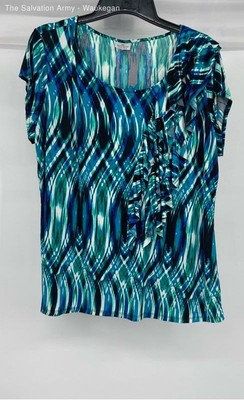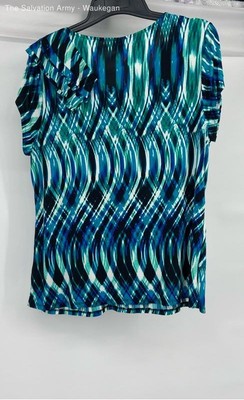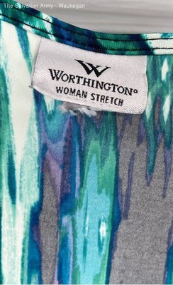 Worthington Womens Multicolor Abstract Short Sleeve Stretch Blouse Top Size XL