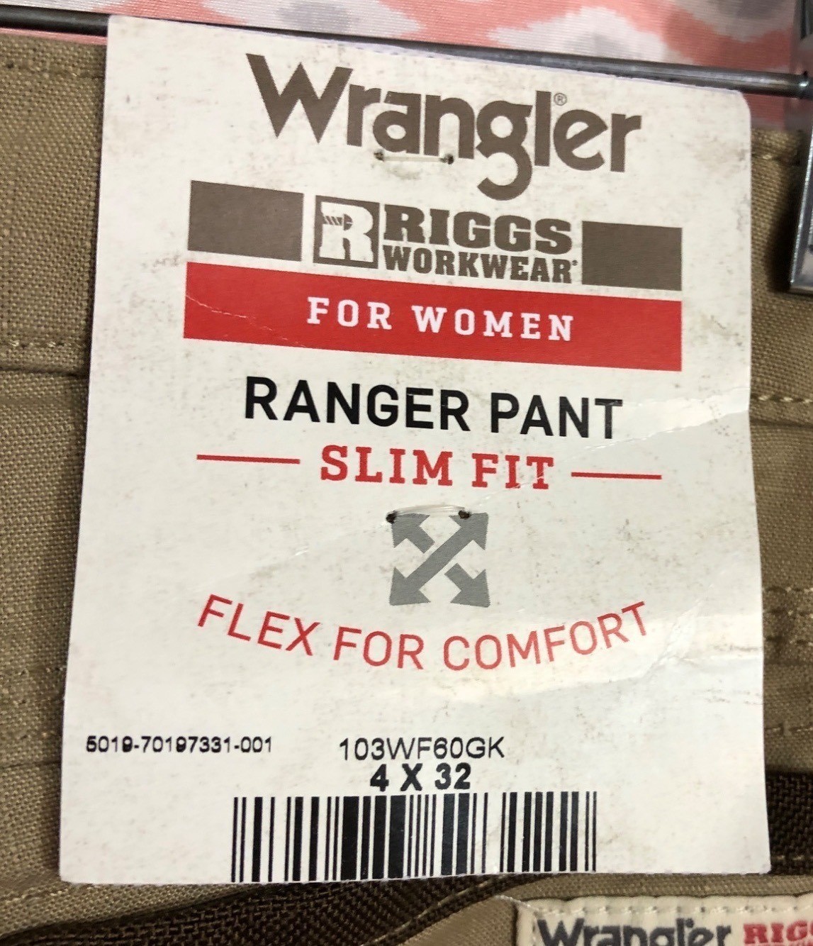 Wrangler Riggs Workwear Womens Ranger Pants Slim Fit 4X32 Khaki Cargo- NWT