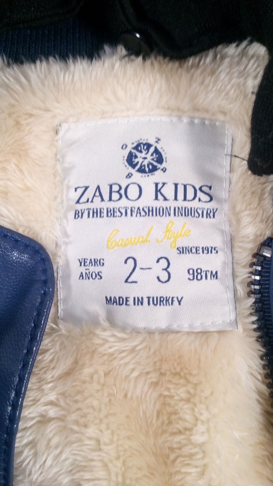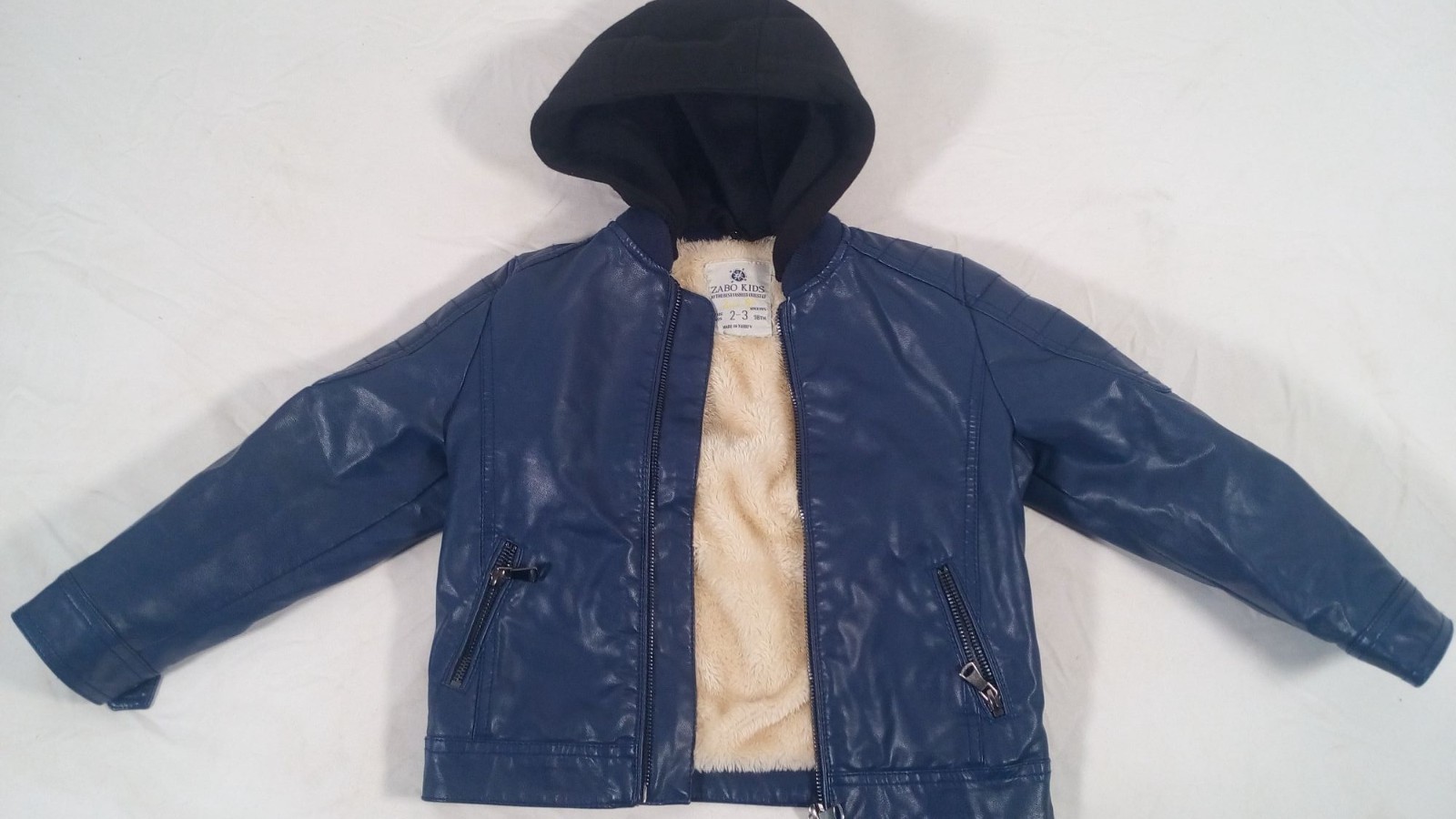 Zabo Kids Blue Faux Leather Jacket With Hood For Ages 2-3