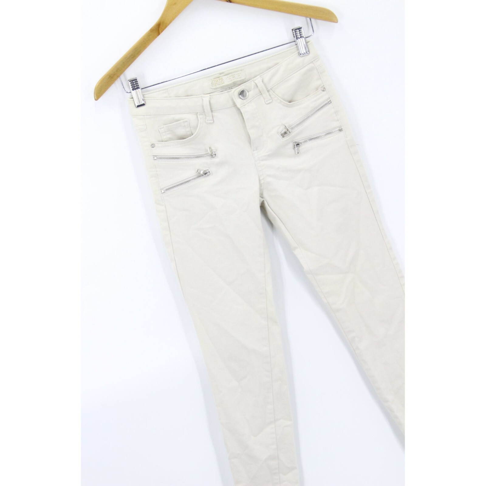 Zara Jeans Women's Casual Beige Z1975 Skinny Denim Zip Ankle Stretch Size 2"