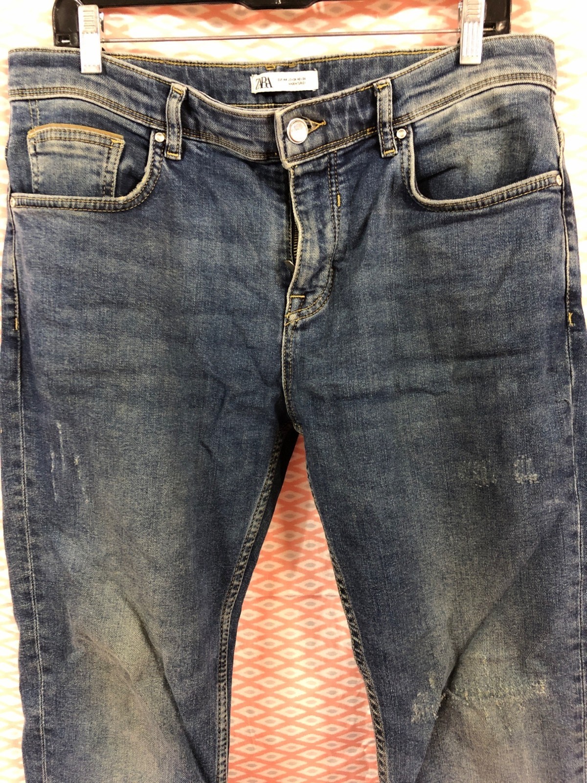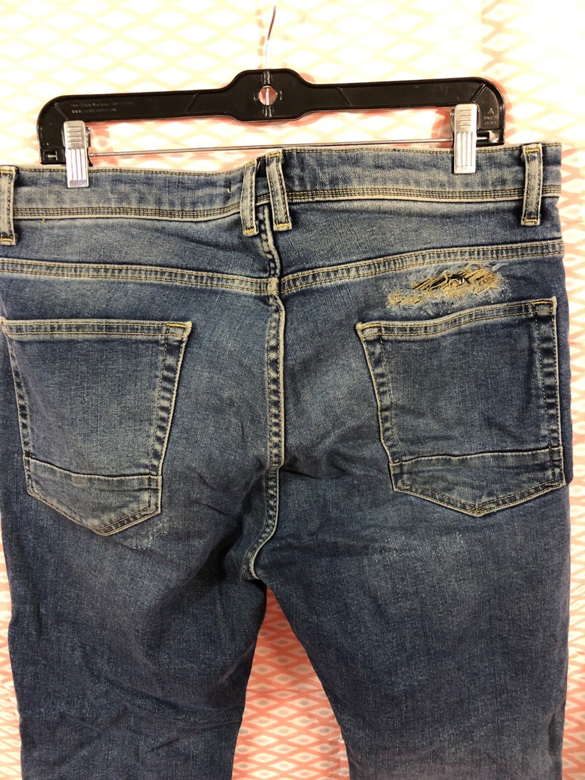 Zara Mens Distressed Slim Fit Blue Denim Jeans Size 34 Inseam 29”