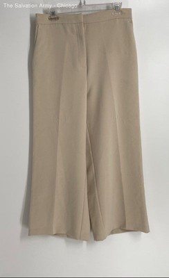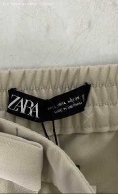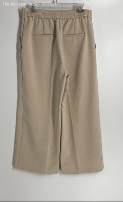 Zara Womens Beige Flat Front Pockets Wide-Leg Trouser Pants Size Large
