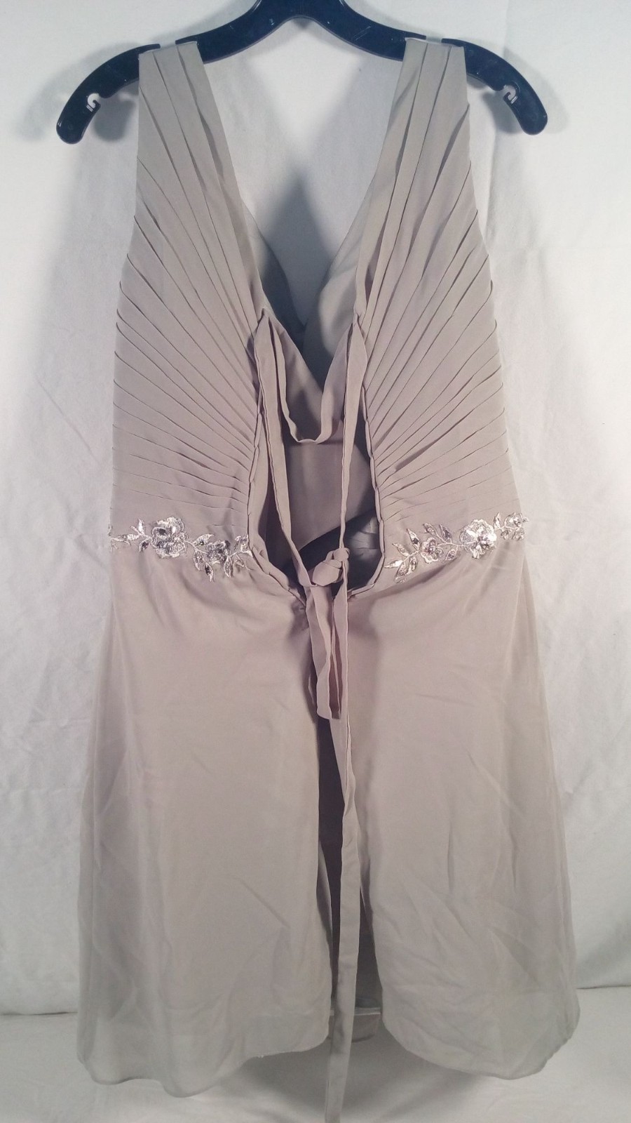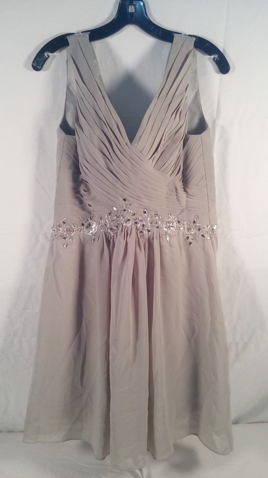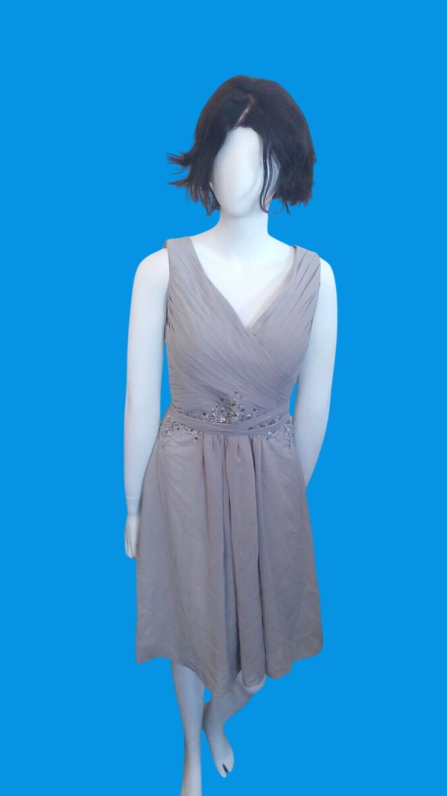 Zaxants Silver Vneck Bridesmaid Knee Length Dress With Embellished Waist